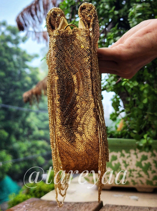 Fold-shaped Indian bags are a stylish and unique accessory that bring an artistic, contemporary edge to traditional Indian outfits. These bags are characterized by their design, which often features folds, pleats, or origami-inspired structures that create a dynamic and textured look. The folds add visual interest and sophistication, making them ideal for enhancing Indian attire. They are often crafted from luxurious materials such as silk, velvet, cotton, or pearls, and can be embellished with embroidery, sequins, or metallic accents.